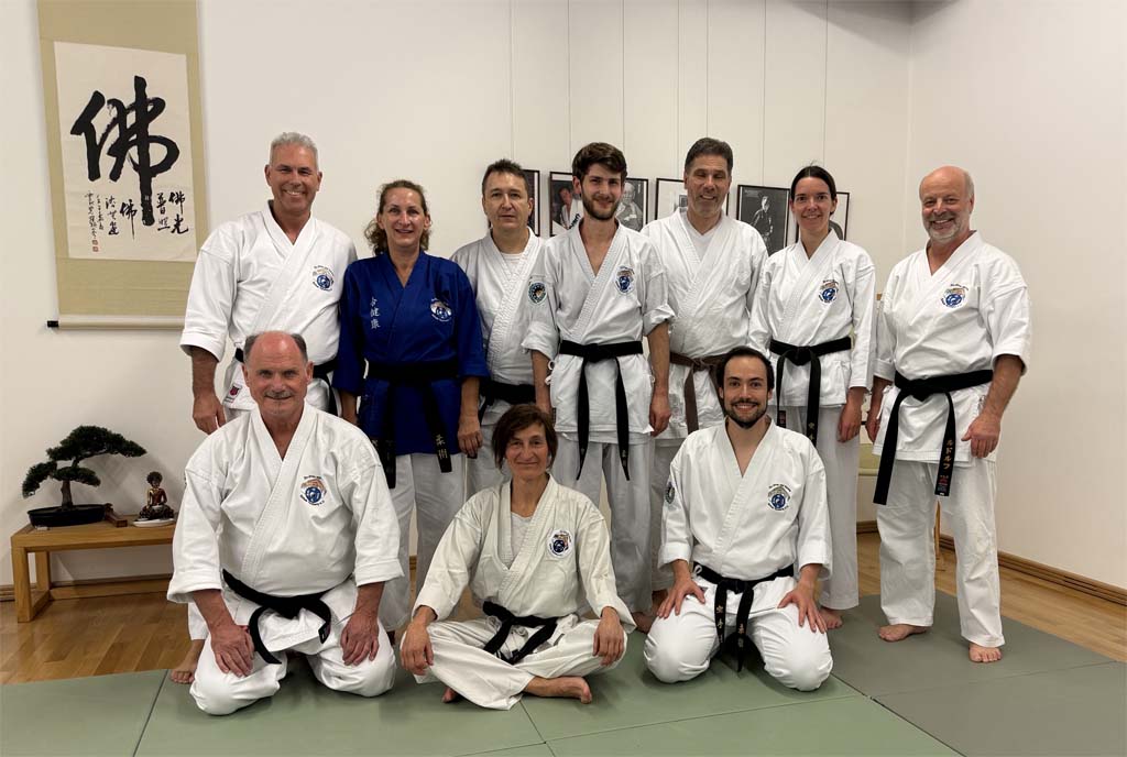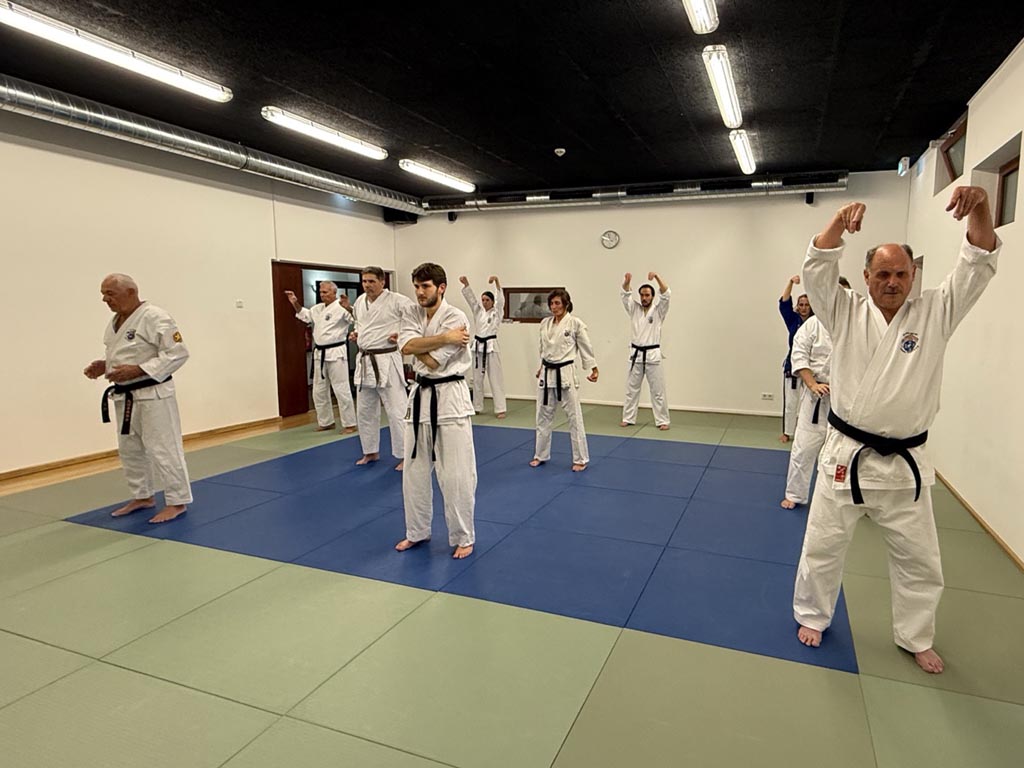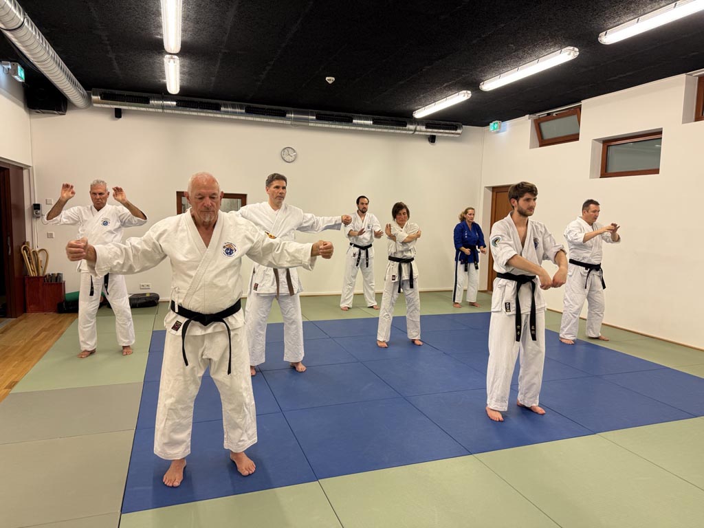 Renshi Josef setzte das Training mit einer Karate-Einheit fort, die ganz im Zeichen des Flusses stand. Im Mittelpunkt stand das Prinzip „Nagashi“, bei dem es darum geht, die Kraft des Partners oder Angreifers aufzunehmen und weiterzuleiten, anstatt dagegen anzukämpfen.