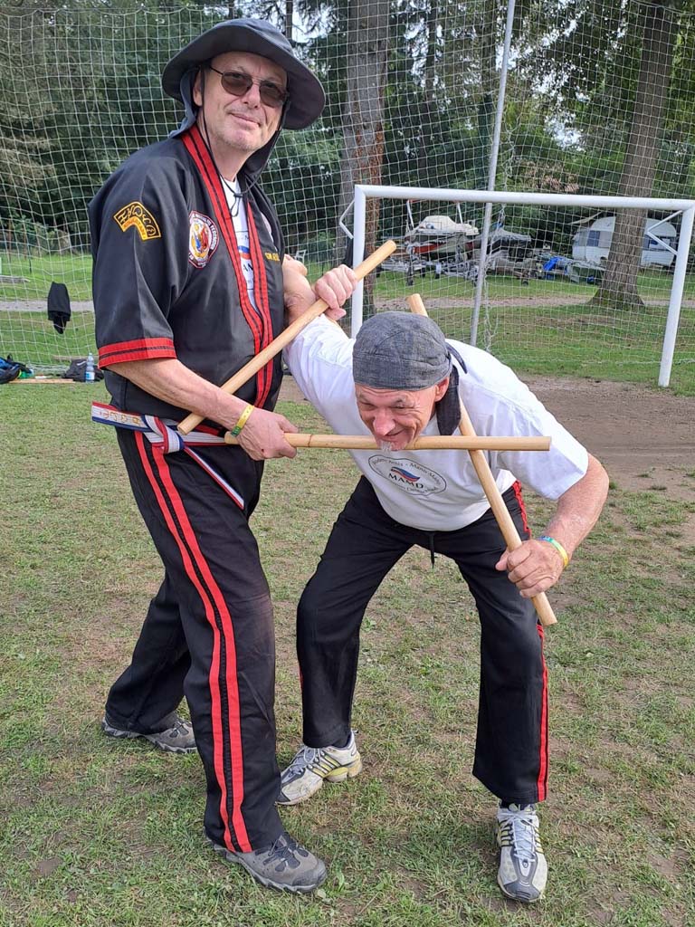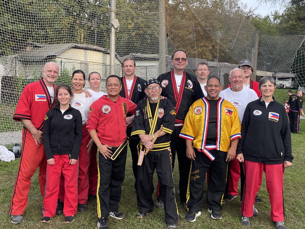 Am Vormittag des 1. Oktober 2025 machten sich zwei Mitglieder der Jiu-Jitsu- und Karate-Schule Penzberg und der Modern Arnis – Mano Mano Organisation Deutschland (MAMD) auf den Weg in den Süden. Das Ziel: das italienische Castelletto sopra Ticino am Lago Maggiore, wo dieses Jahr das internationale Kombatan-Camp stattfinden sollte. Abgeholt wurden wir von Großmeister Roland Herlt und Renate Kinder, die bereits am Vortag von Wolfsbüttel aus anreisten. Nach der langen, aber entspannten Fahrt erreichten wir unser Ziel und bezogen unsere Unterkunft in unmittelbarer Nähe zum See. Bereits am selben Tag trafen wir die ersten Organisatoren und Großmeister, unter ihnen Grand Master Ernesto Presas Jr., Grand Master Randy Remolin und Senior Master Davide Alloni. Am frühen Abend traf auch die MAMD-Truppe aus Leipzig ein und wir ließen den Abend gemeinsam in gemütlicher Runde im Camping-Restaurant ausklingen.