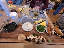 Die 7 Stunden filmen, üben, korrigieren und besprechen wurden nur unterbrochen von einer kurzen Pause, zu der die Penzberger lecker Krapfen besorgt hatten. Aber selbst hier wurden die intensiven Gespräche weitergeführt. Ehe man sich versah, war die wunderschöne gemeinsame Zeit des Übens vorbei und die Gespräche wurden in einem nahegelegenen asiatischen Restaurant bei einem außergewöhnlich guten Essen fortgesetzt.